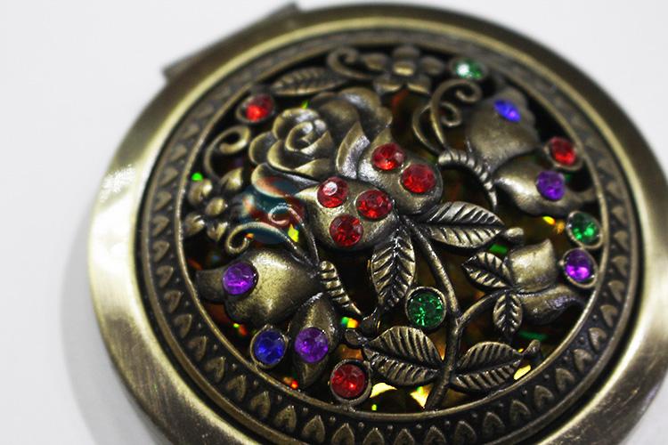 Top quality round hollow alloy mirror with colorful stones