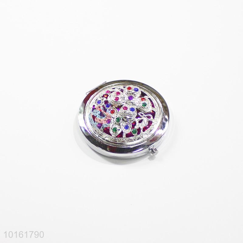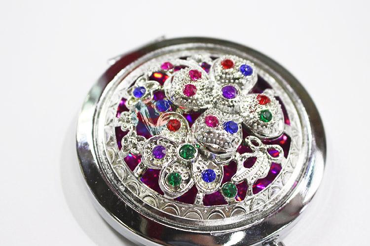 China wholesale round hollow alloy mirror with colorful stones
