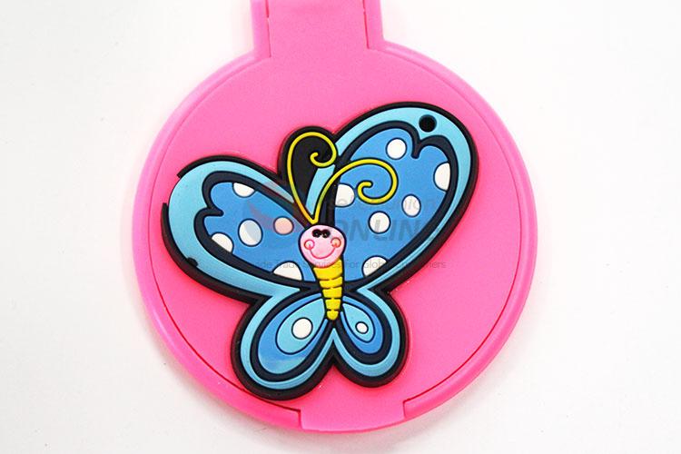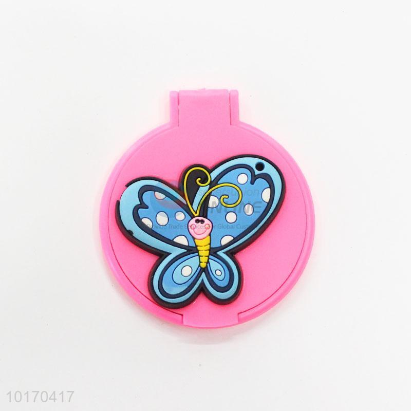 Blue Butterfly Pattern Mini Round Plastic Single-sided Cosmetic Mirror