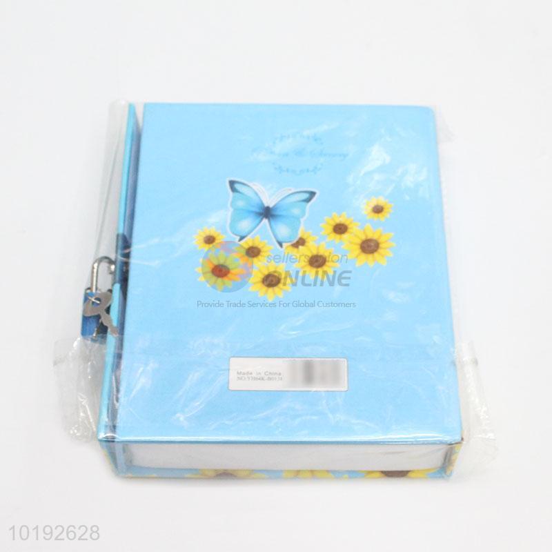 New Student Sky Blue Flower Butterfly Dairy Notebook with Lock