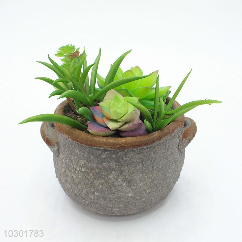 Fashion artificial succulent plant pot round flowerpot with 2 ears
