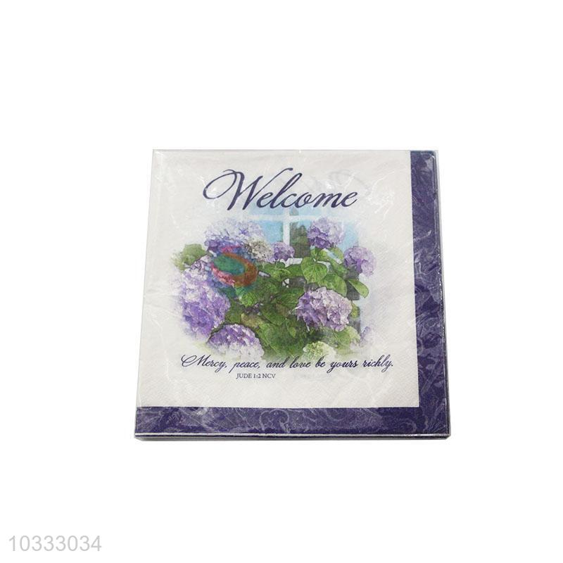 Beautiful Purple Flower Printed Square Paper Towel for Sale