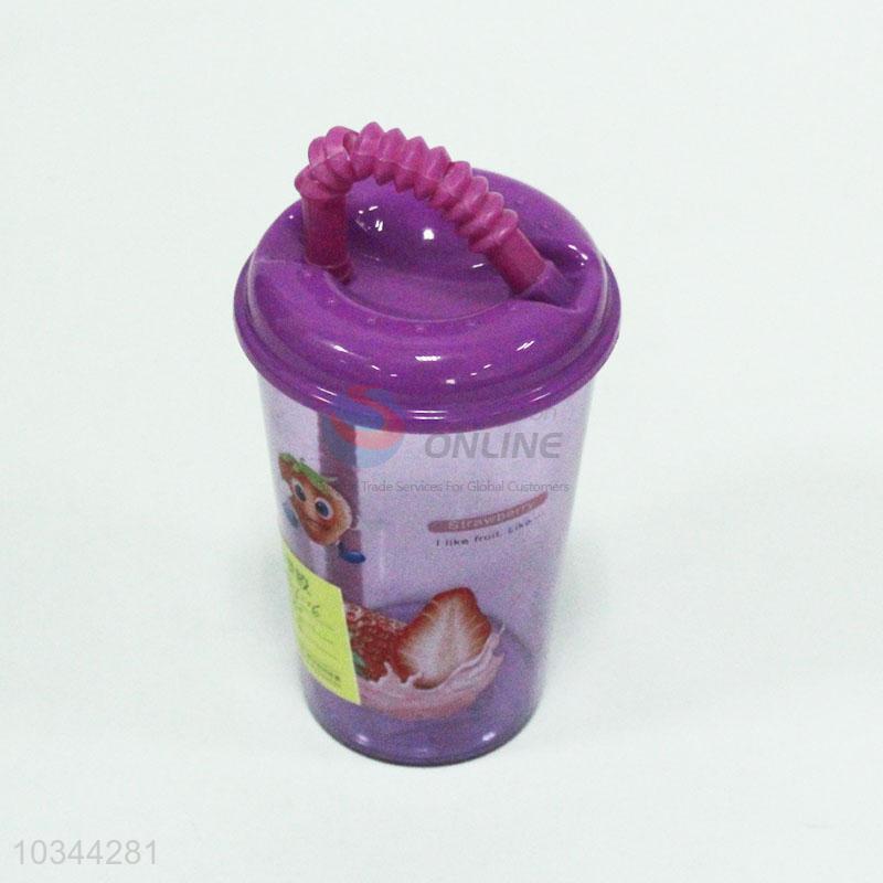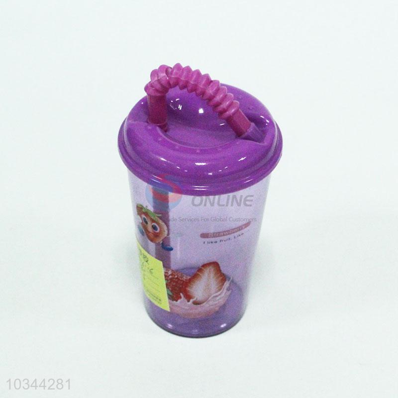 Plastic strawberry printed water cup with straw