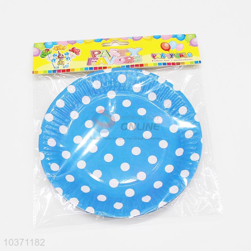 Useful 6pcs simple blue paper plates with white dots