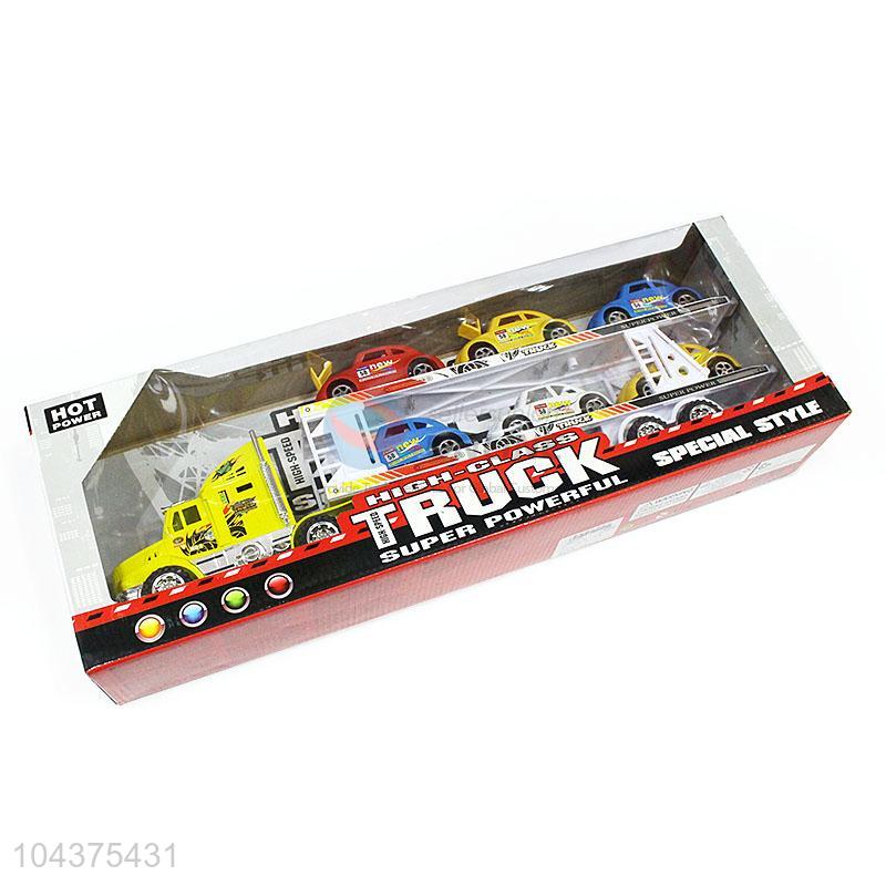 Super Inertial Double-Deck Platform Truck With 6 Pieces Toy Car Set