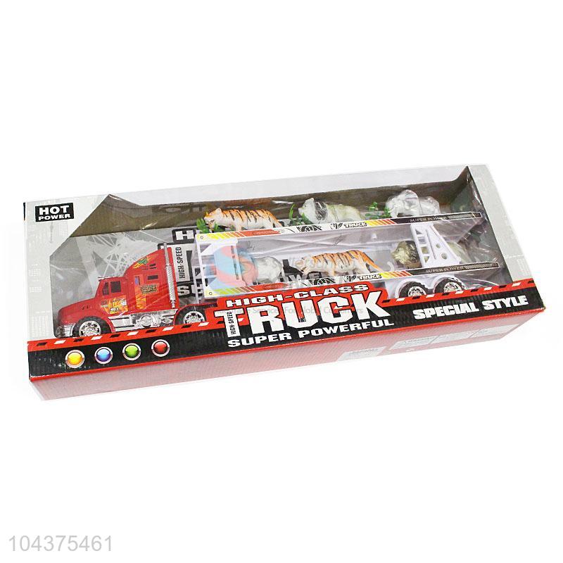 Best Selling Inertial Double-Deck Platform Truck With Wild Animal Toy Set
