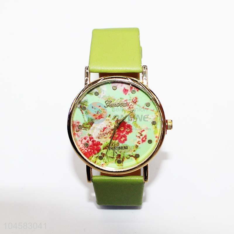 Flower printing pu leather wrist watch