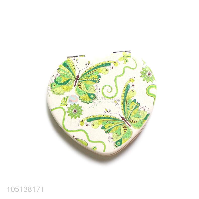 Customized wholesale heart shape double sided pocket mirror