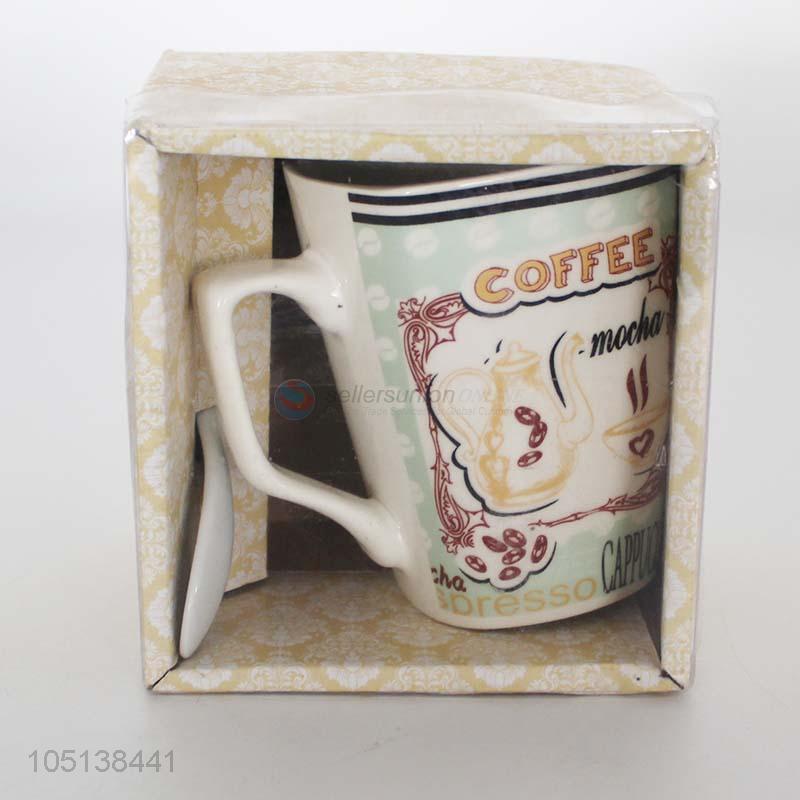 Cheap and High Quality Ceramic Cup for Drinking with Spoon