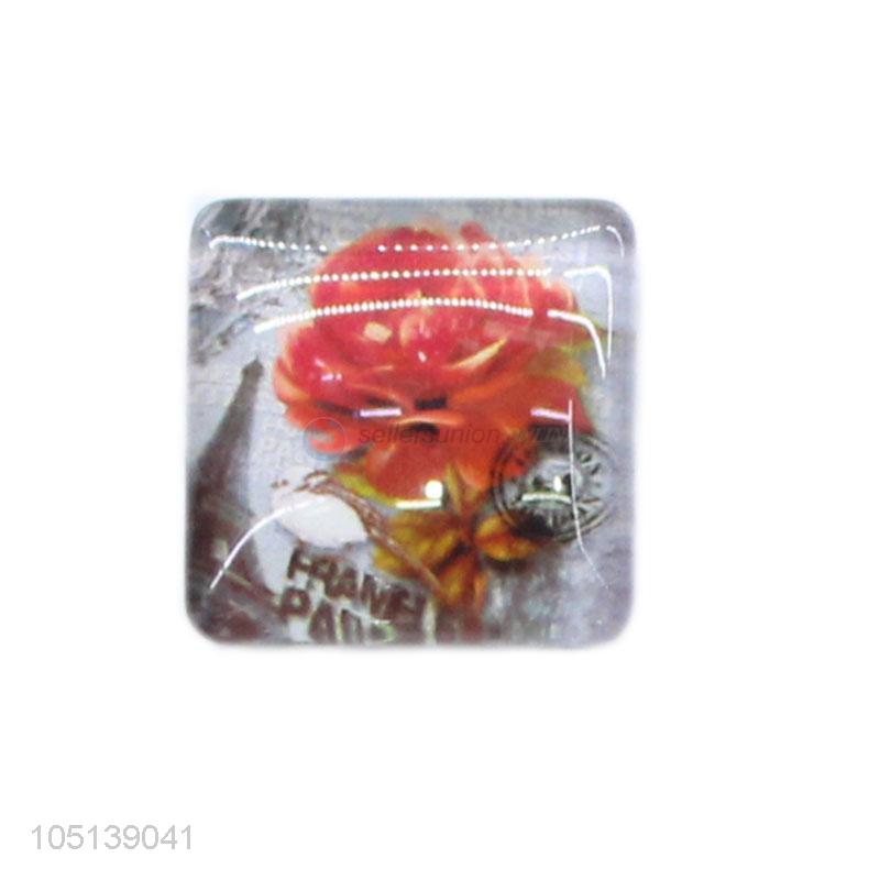 Cheap professional home decor square flower pattern glass epoxy fridge magnet