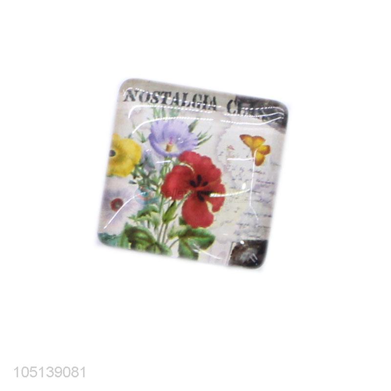 Factory OEM home decor square flower pattern glass epoxy fridge magnet