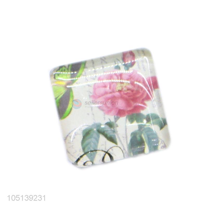 Competitive price home decor square flower pattern glass epoxy fridge magnet