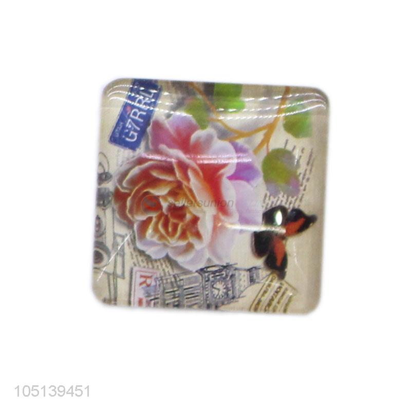 Promotional products square flower pattern glass crystal fridge magnet