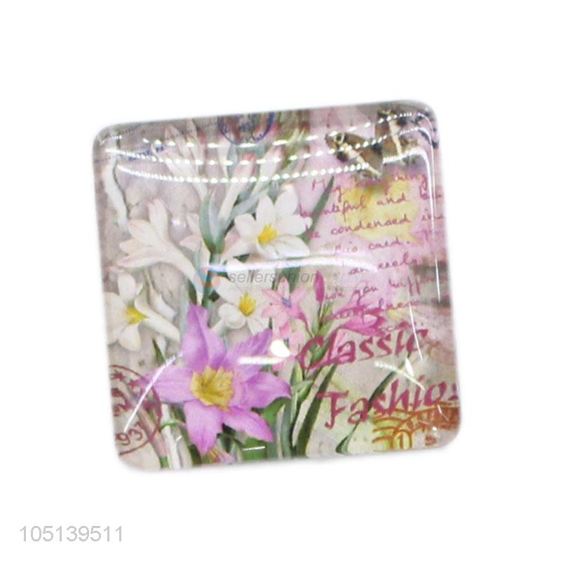 China branded home decor square flower pattern glass epoxy fridge magnet