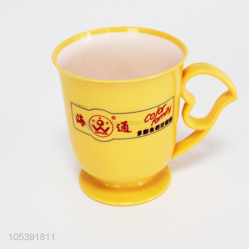 New design cheap yellow plastic cup with handle