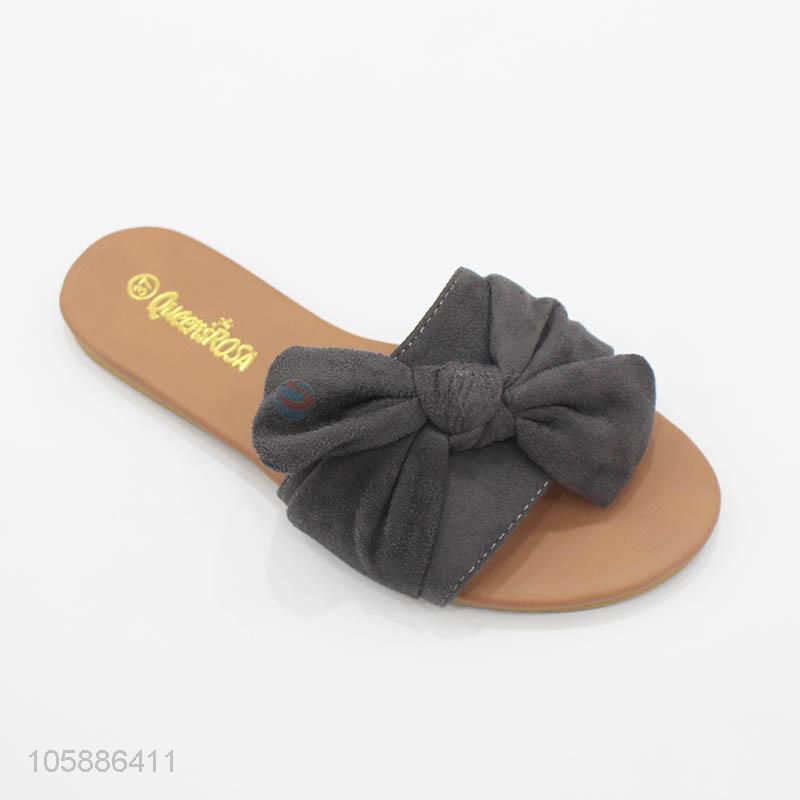 China maker faux suede bowknot embellished ladies flat slippers
