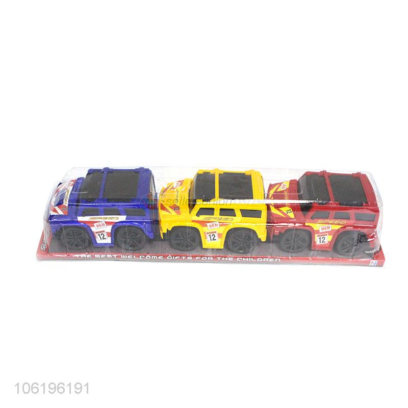 Cheap 3pcs inertial toy vehicle car in pvc box for kids gift
