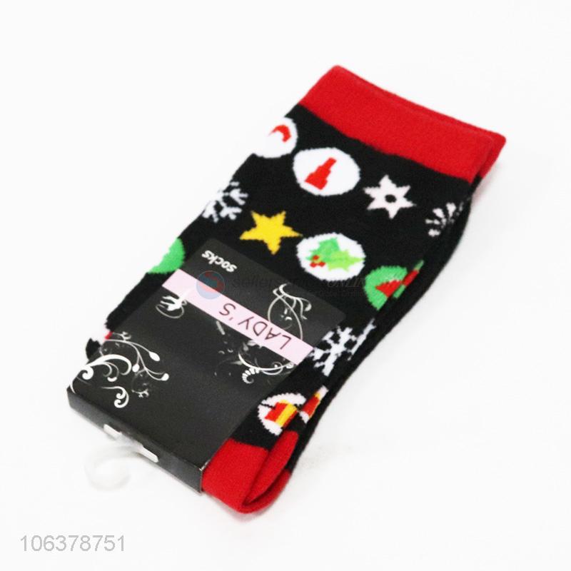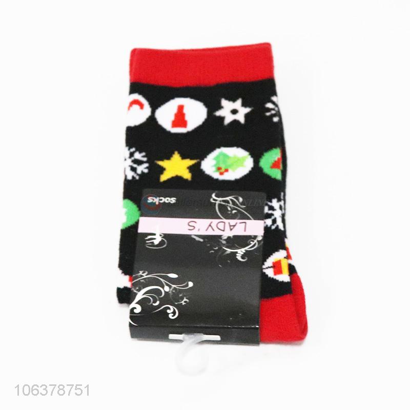 Competitive price women geometric pattern jacquard mid-calf length socks
