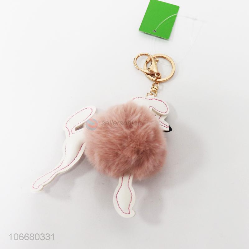 • Factory supply fluffy pom pom key chain faux rabbit fur keyring