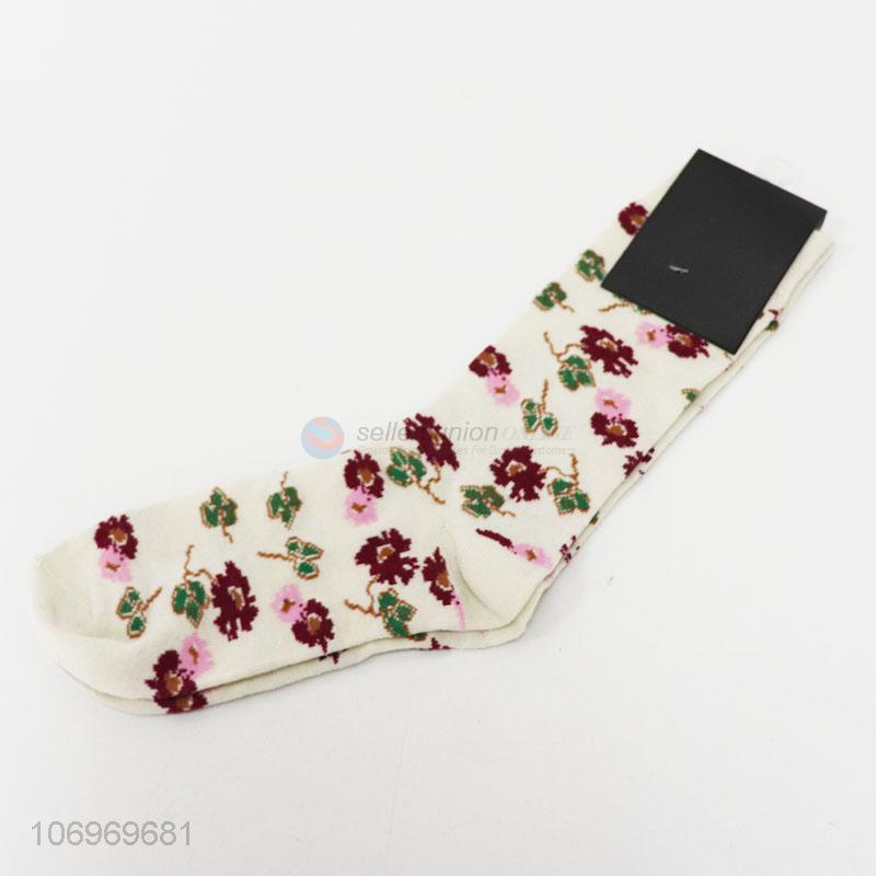 OEM flower jacquard women winter warm mid-calf length sock