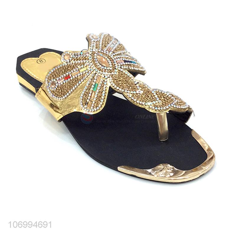 China maker women outdoor colorful rhinestones pu leather thong sippers