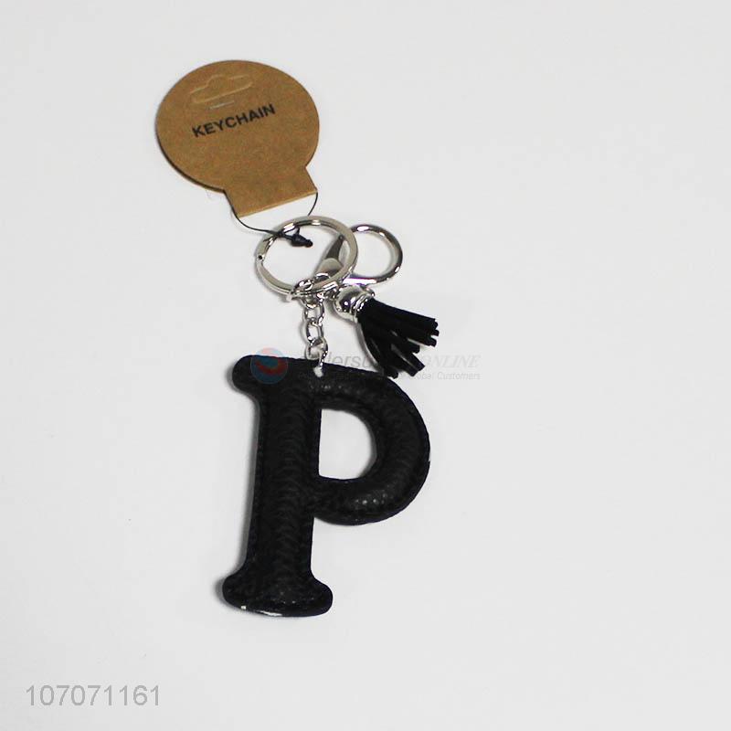 Good quality fashion key chain pu leather alphabet letter key ring