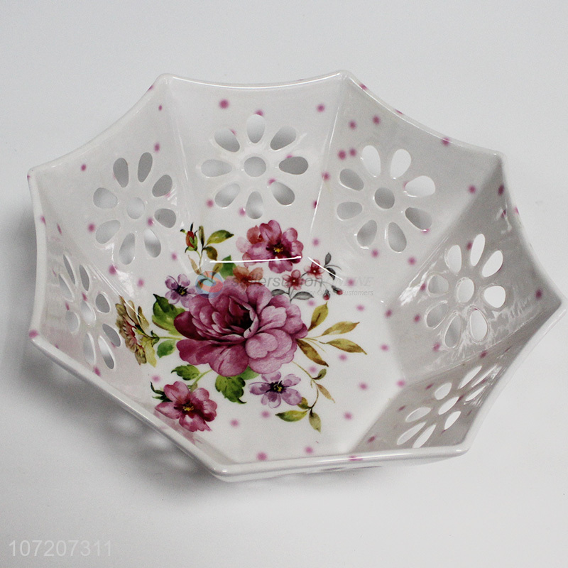 Best selling flower printed hollowed-out melamine fruit plate for decoration