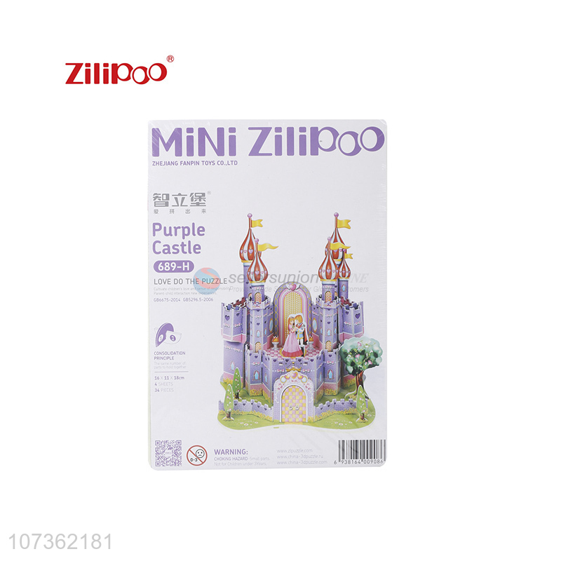 Professional Diy Toys Educational Paper Jigsaw Purple Castle Puzzle Toys For Kids