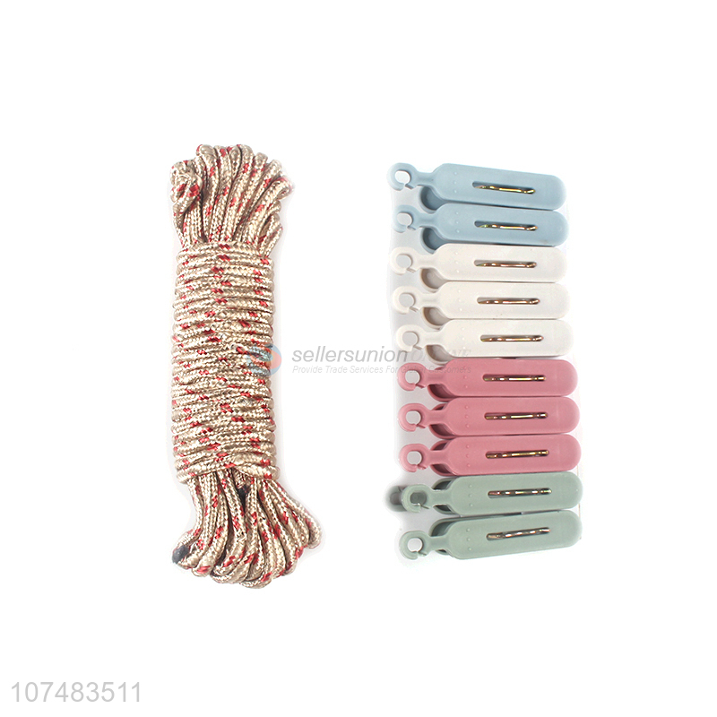 Hot selling home laundry 10 pegs plastic clothespins and clothes line set