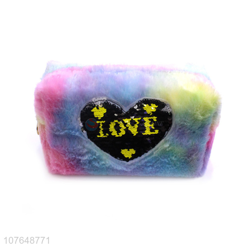 Modern Style Colorful Fluffy Makeup Bag With Zipper For Ladies