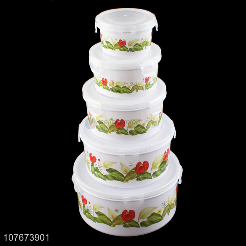 Best Price 5 Pieces Round Plastic Preservation Box Cheap Food Storage Box Set