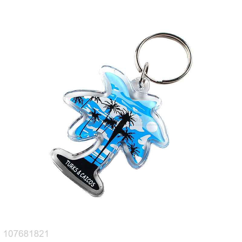 New design coconut tree shape key chain acrylic keyring for souvenir