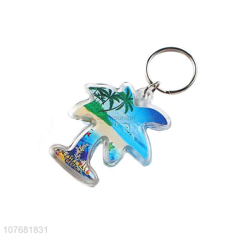 Latest design coconut palm key chain acrylic keychain key ring