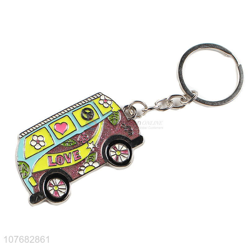 Good sale cartoon bus key chain metal keyring for souvenir