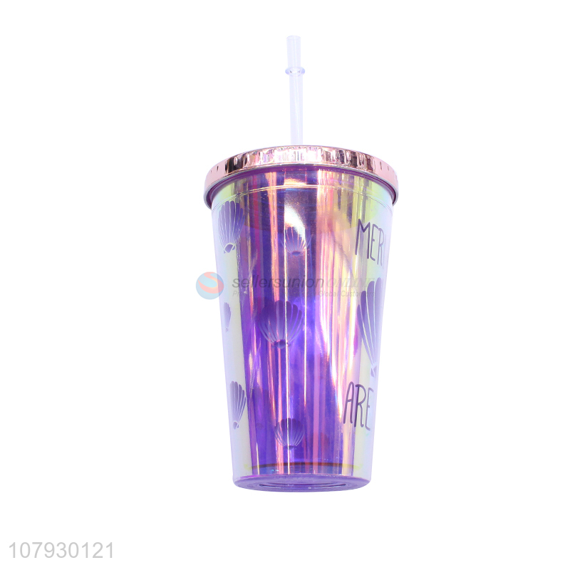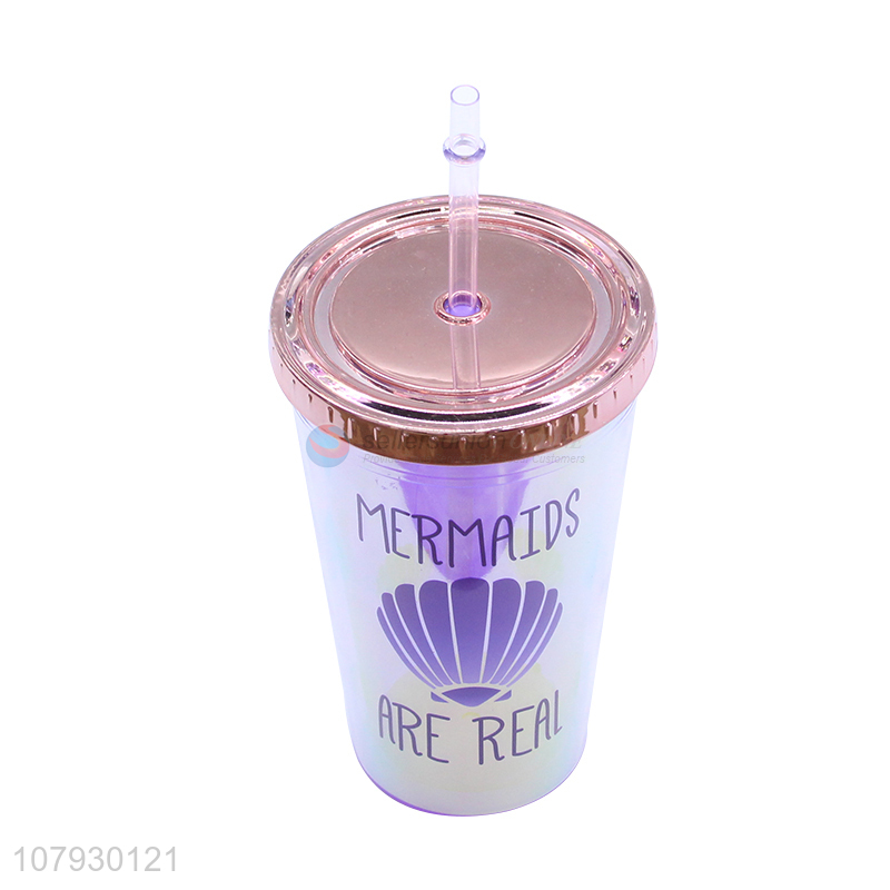 Good quality cute plastic mugs reusable cups milk cup with straw