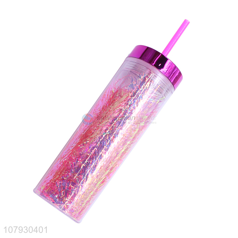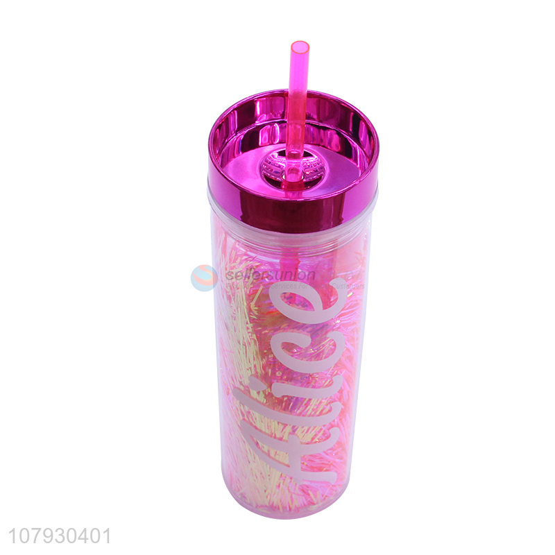 • Cheap price plastic double wall straw water cup water bottle