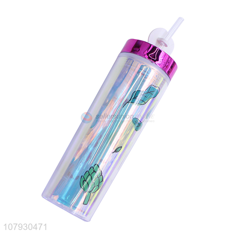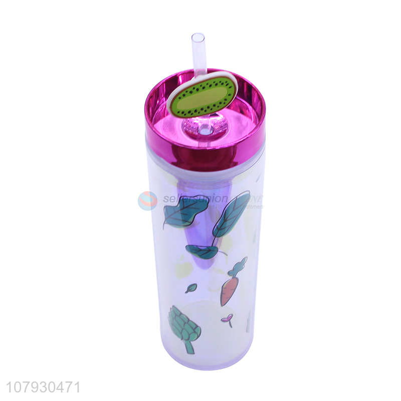 • Cheap price plastic double wall straw water cup water bottle