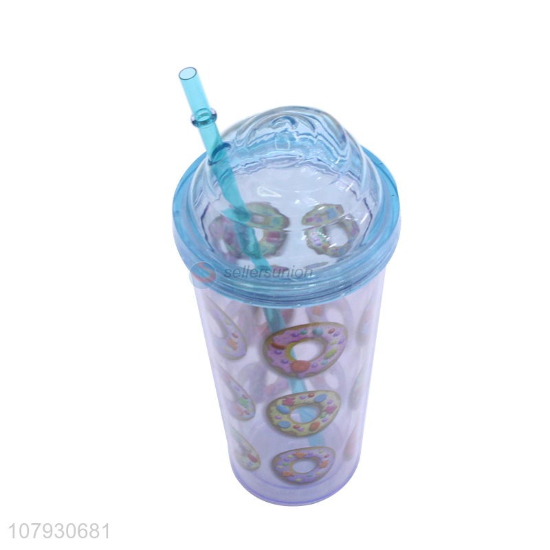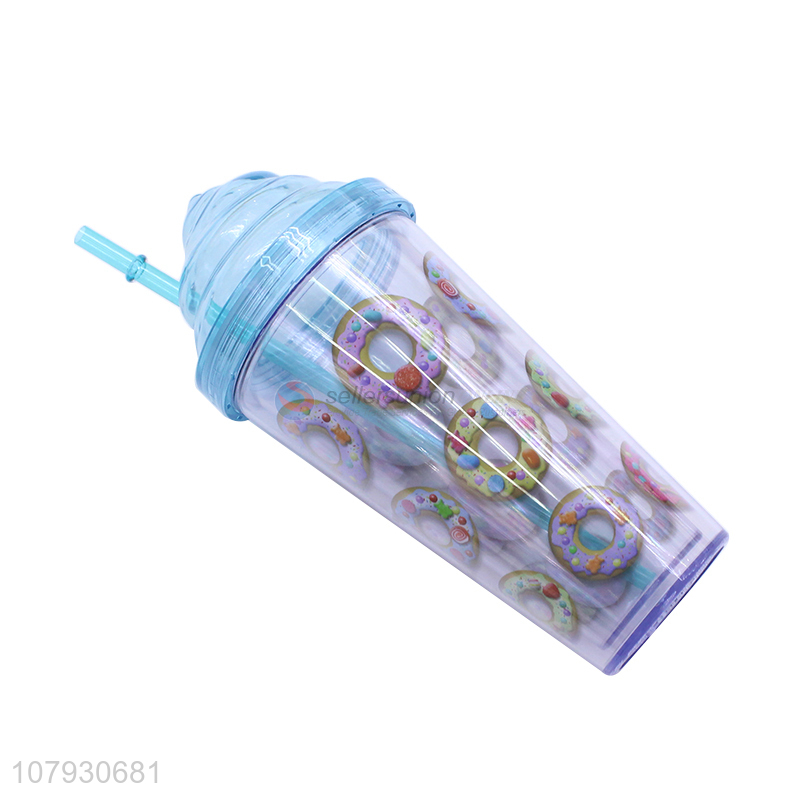 • Cheap price plastic double wall straw water cup water bottle