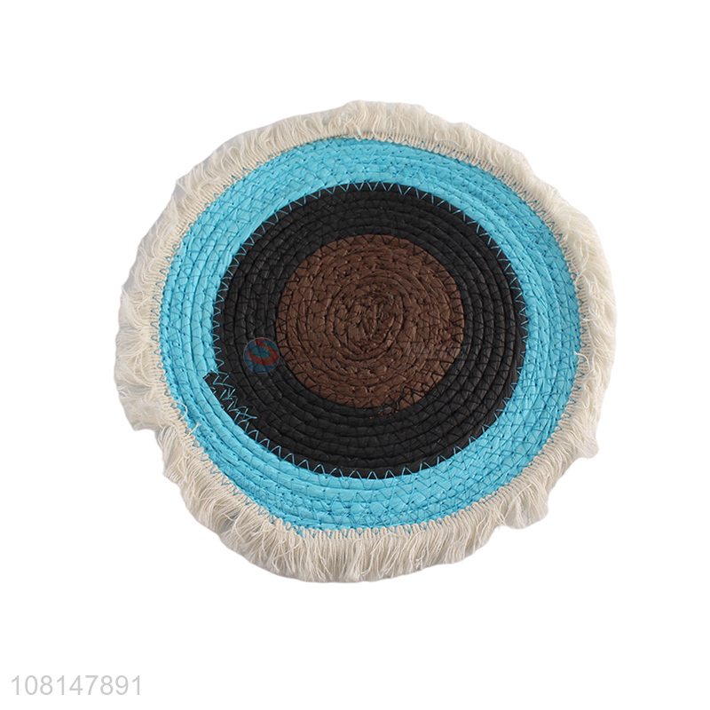 Low price round non-slip woven placemat table mat with tassels
