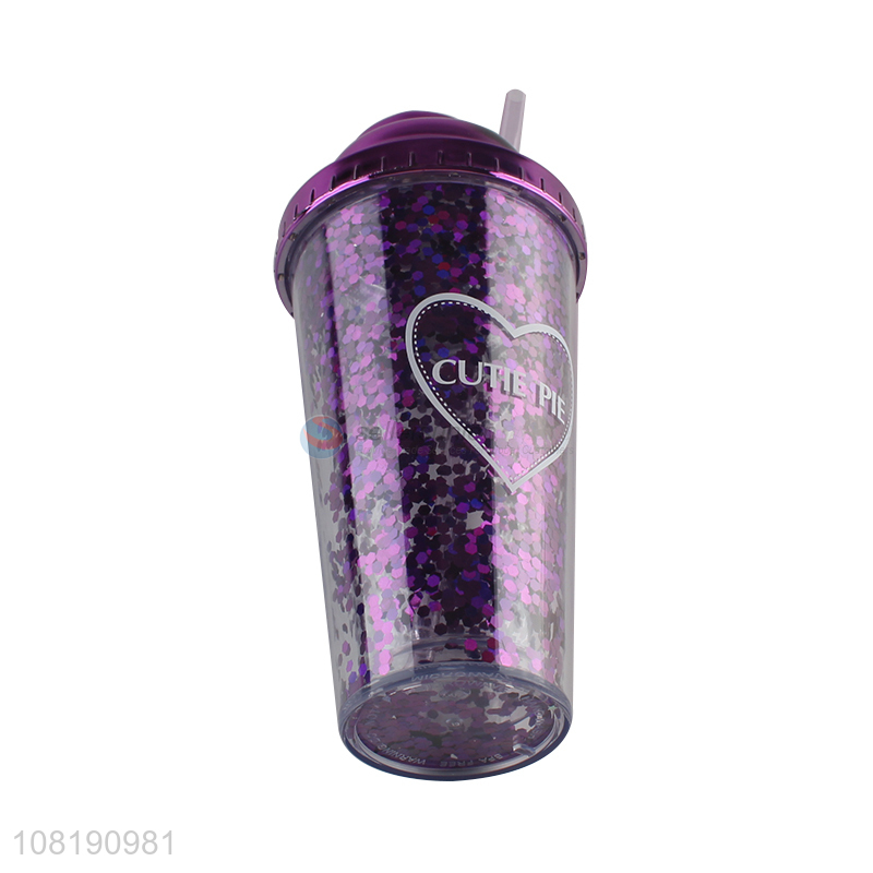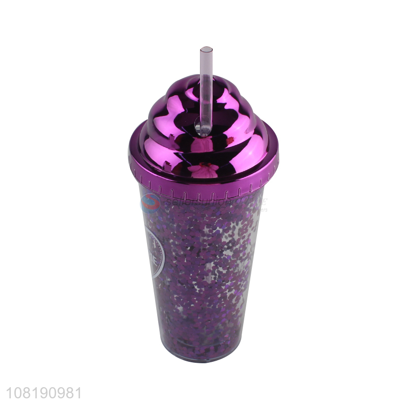 Hot product double walled water mug plastic drinking cup with straw and lid