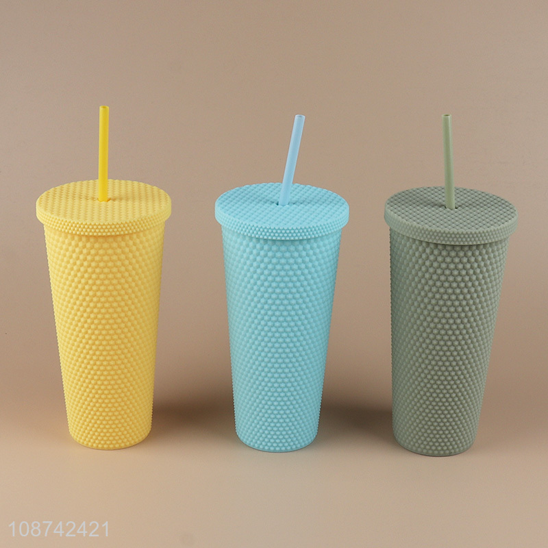 Good quality reusable double-walled plastic tumbler with lid and straw